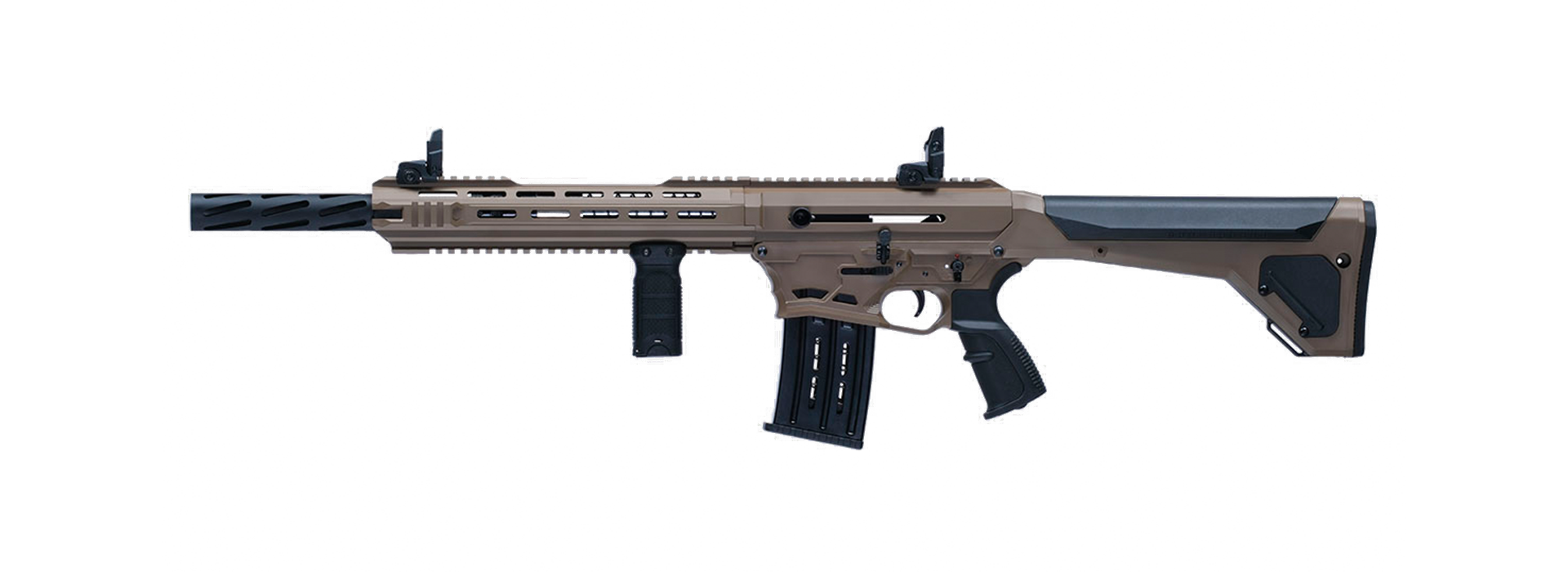 om other AR-type polymer lower receiver shotguns. M22 is unique with its ambidextrous charging handle, safety selector, and magazine release button. Has a bolt buffer piece to enhance its life expectancy that also serves as a recoil emission system. Easy-to-dismantle receivers provide convenience for maintenance and carrying.